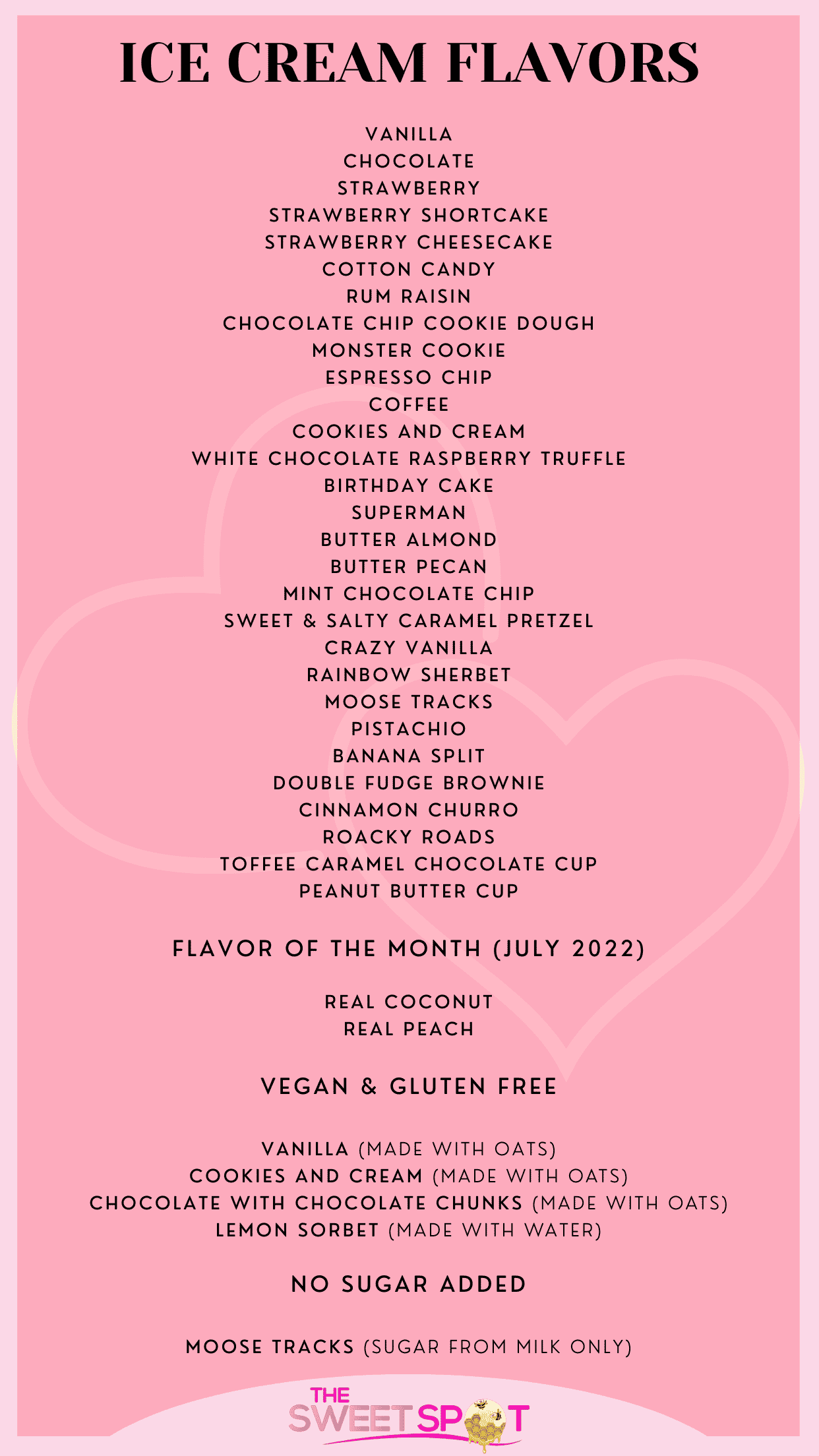 Current flavors available at The Sweet Spot Atlantic Avenue.